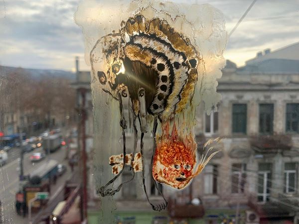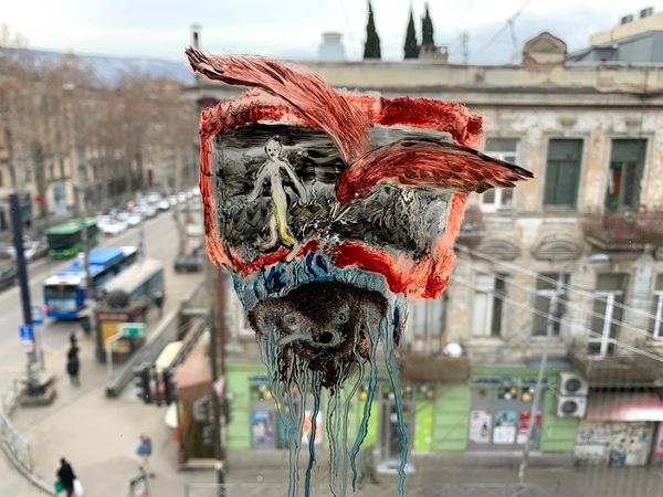 今回は、2020年に「令和二年度五島記念文化賞」美術新人賞を受賞し、ジョージア各地での滞在制作を経た成果発表展となる。ヨーロッパとアジアの境にあるジョージア。かつて旧ソ連構成国の一つだったコーカサス地方の小国でもある。2022年2月末、渡航直前にロシアによるウクライナ侵攻が始まり、ジョージアでの1年間の滞在にも大きな影響を与えたという。約80点からなる作品群には、国家、人種、民族、アイデンティティー、人々の日常生活といった断片が凝縮されている。