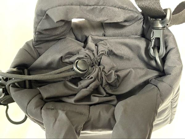 開閉はファスナーではなくドローストリング仕様になっていて、折りたたみ傘などバッグから多少物が飛び出していても、開け口を閉められるので使いやすいです◎