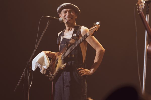 またAI関係のMCをちょっとはさんでから、「先ほど声を出していただいて、喉が開いたと思う。ただ、筋肉量が足りてない。運動したいと思います」という圭介のアオリから入った「真冬の盆踊り」は、20年くらいこの位置をキープし続けてきた曲だが、実は直近のツアーではセットリストに入っていなかったりする。が、さすがにこの日は、ここに置いたのだろう。オーディエンスみんな、力の限りのヨサホイ踊りとヨサホイコールで、フラカンに応えた。