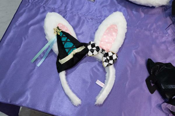 可愛いカチューシャや、魔法使いのステッキをモチーフにしたステッキチャームなど、ハロウィーンらしいデザインのグッズが並びます。