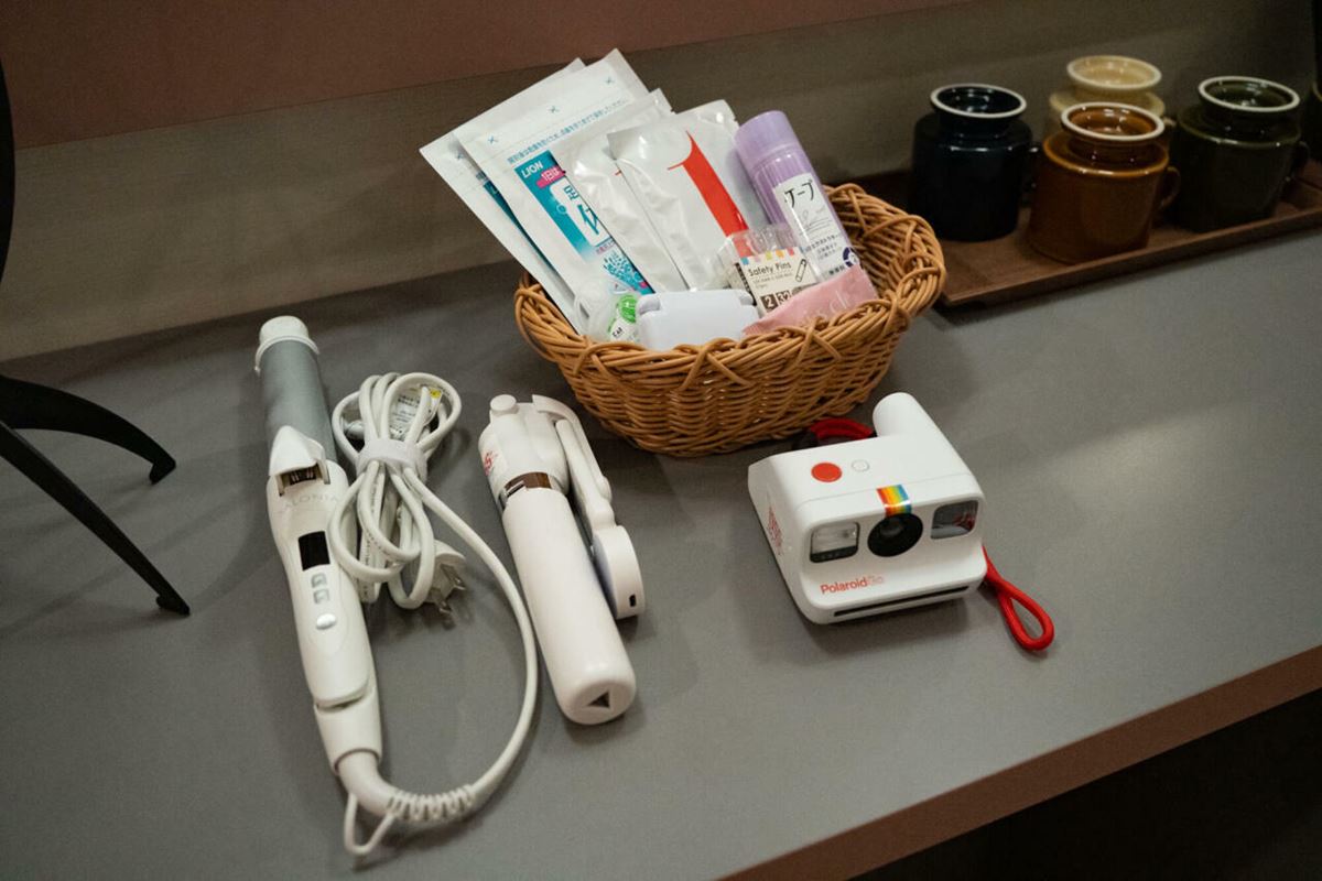 客室にはあらかじめ、ヘアゴムやヘアアイロンといったアイテムを用意。