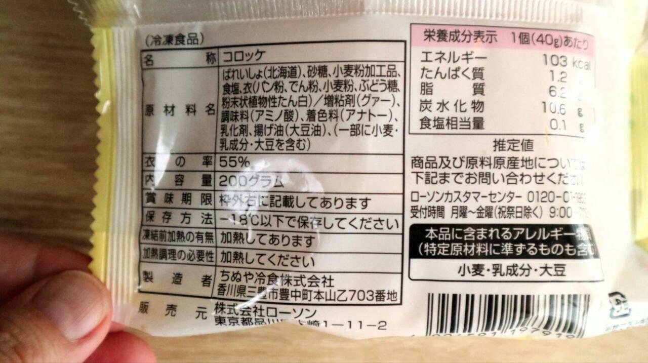 続いては、世代を問わず愛されるメニュー、コロッケです。原材料のじゃがいもは北海道産、国内工場製造なので、安心感もありますね。