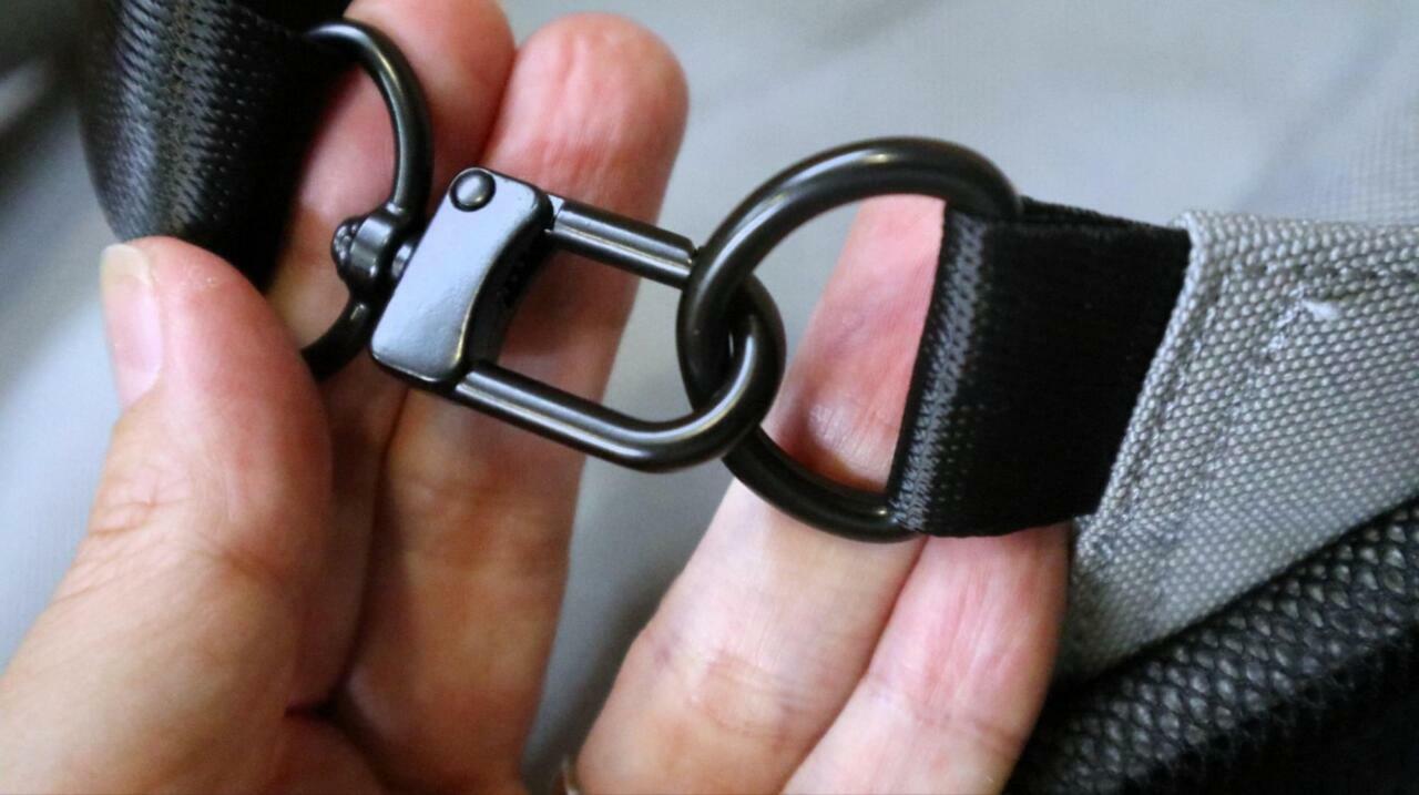 ショルダーベルトは2ヶ所に接続可能で、体格や利き手、その日の気分に合わせて変更OK。金属製フックは頑丈で安心感があります♪