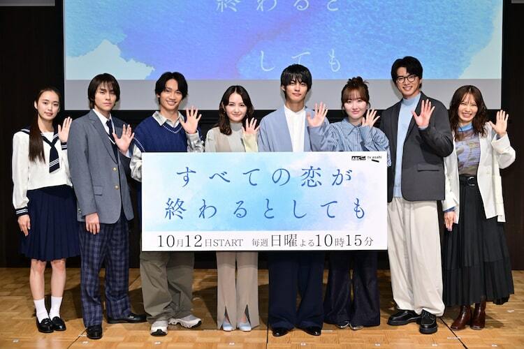 葵わかな、神尾楓珠がダブル主演を務める新ドラマ「すべての恋が終わるとしても」の制作発表会見が先頃行われ、葵、神尾のほかキャストの藤原丈一郎(なにわ男子)、本田望結、山下幸輝、大塚萌香、白洲迅、市川由衣が出席した。