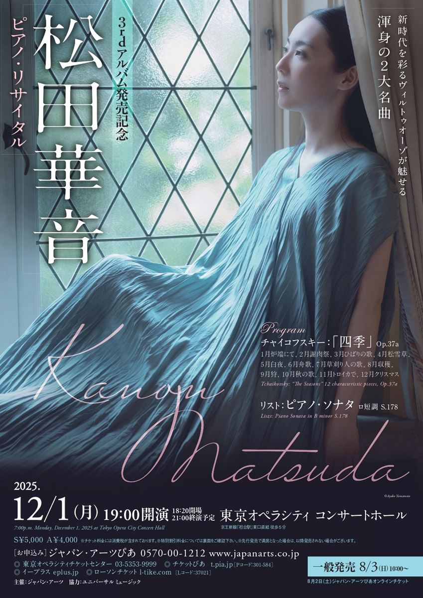 先ごろ、約8年ぶり3枚目となる素敵なアルバムを発表したピアニスト、松田華音のリサイタルが12月に予定される。