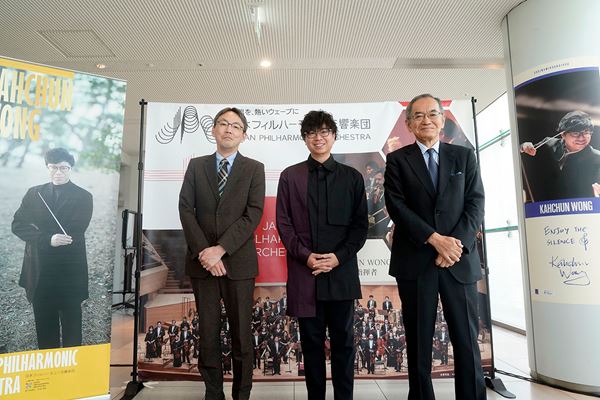 2026年に創立70周年を迎える日本フィルハーモニー交響楽団が、記念シーズンの公演ラインナップを発表。首席指揮者カーチュン・ウォンらが会見に臨んだ。