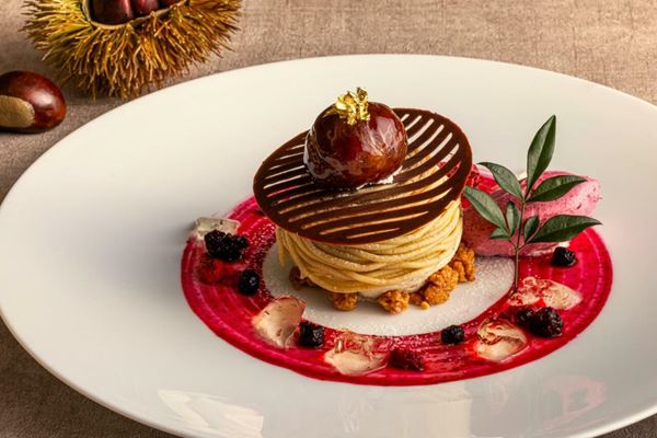 スペシャルアシェットデセールには「利平栗のモンブラン カシスのソルベ添え」が登場。