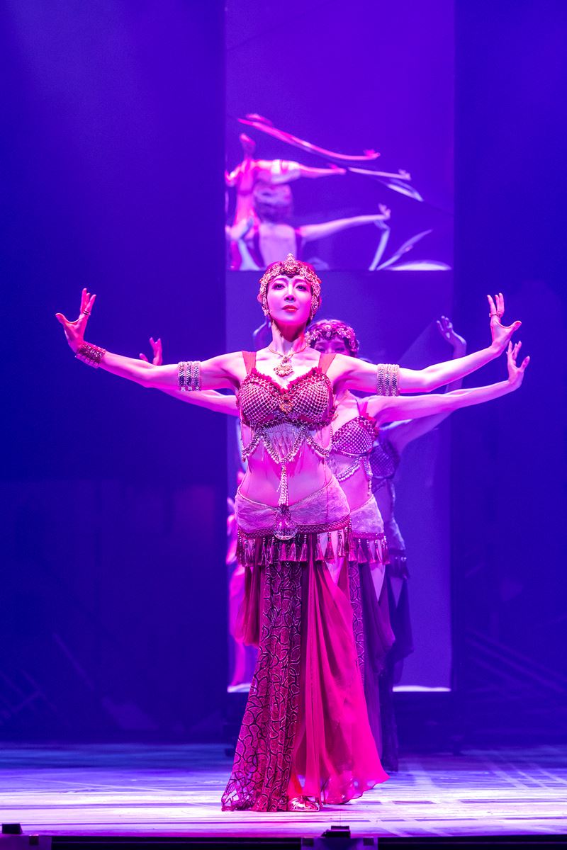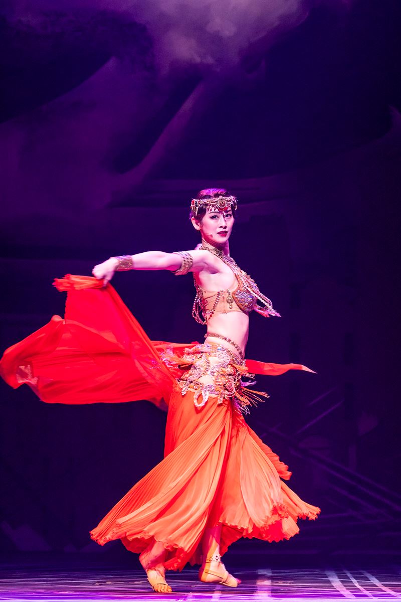 今回で再々演となる演目だが、その人気の理由を改めて体感する3時間となった。やはりまずはマタ・ハリという女性の魅力が大きい。ジャワの妖艶な踊り手にして、スパイとして暗躍したと言われる実在の人物。その華やかさとは裏腹に、抱える闇の深さ。そしてそれゆえに強く愛を求めながらも、信じ切ることが出来ない悲しさ。そんな複雑な生きざまを、柚希は一見強く、だが実に繊細に、愛希は危ういようで、芯の太さを滲ませ体現する。同じマタ・ハリながら両極とも言えるふたりの演技に、それぞれ役者としての底力を見た。また続々と変わる絢爛豪華な衣裳も目を引く。