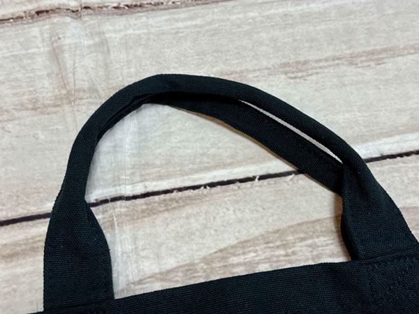 【カルディ コーヒーの日バッグ】持ち手の中央は二つ折りで縫われており、持ちやすい工夫が凝らされています