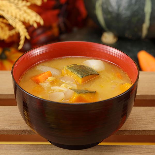 豚汁は、同じくスイパラ農園の野菜をたっぷりと使用した白みそ仕立て。秋の季節にはかぼちゃが加えられます。この塩にぎりと豚汁が食べ放題!
