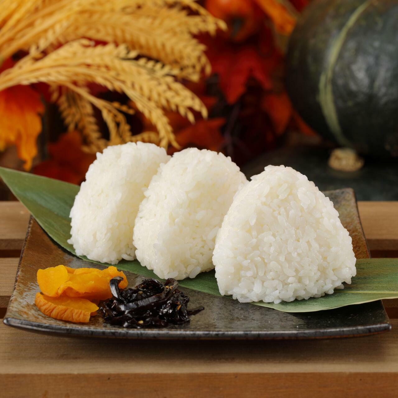 塩むすびには、山形県にあるスイパラ農園で収穫された新米「はえぬき」を使用。長崎県産の花藻塩を合わせています。