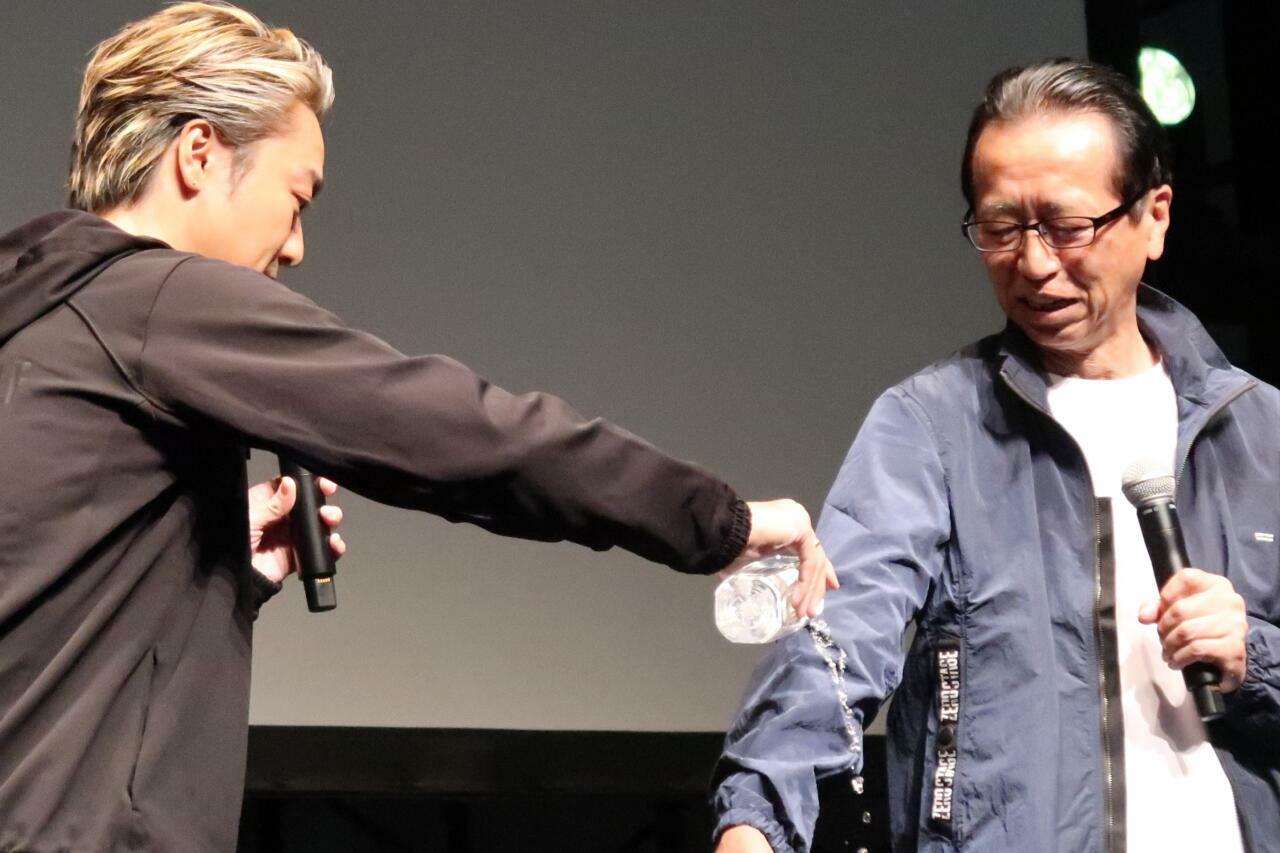 さらに、撥水性を試すためにワークマン土屋専務の着用ウェアにTAKAHIROさんがおそるおそる水をかける一幕も。水が弾かれて下に落ちる様子に会場は大盛り上がり。笑いと熱気に包まれた発表会となりました!