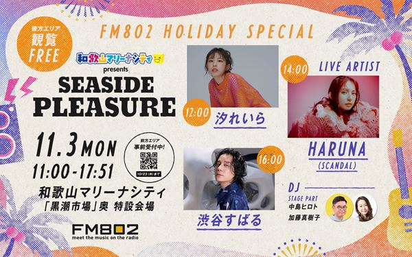 渋谷すばる、HARUNA(SCANDAL)、汐れいらが出演 文化の日のFM802は和歌山マリーナシティから公開生放送