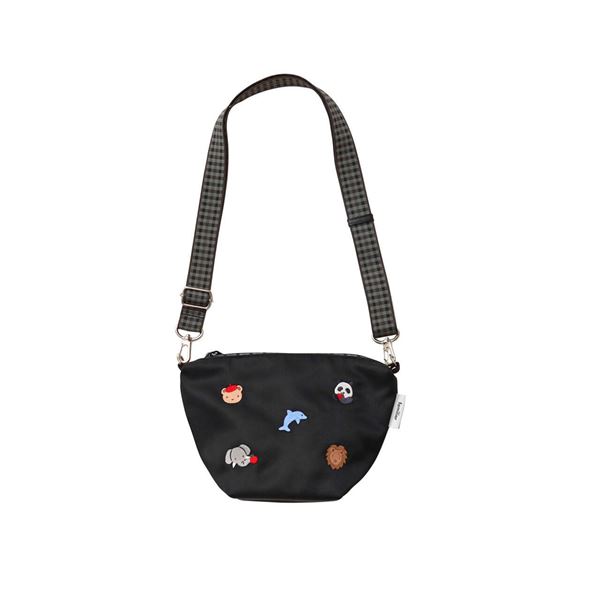 他にも、familiarで人気の舟形ナイロンポシェットには、クマちゃん・パンダ・イルカ・ゾウ・ライオンなど、アドベンチャーワールドの動物たちを刺繍で表現!familiarオリジナルのテープをショルダーストラップに使用したこだわりの一品です♪