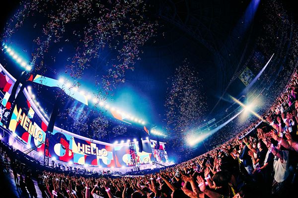 「HELLO」では、巨大ビジョンに映し出された特大サイズの“FUKUOKA”、“35TH ANNIVERSARY”の文字をバックに、パーカッシブなリズムと福山の伸びやかなボーカルがドームにこだました。