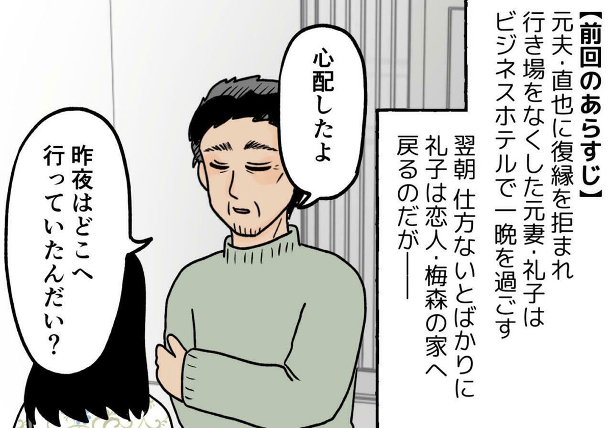 元夫・直也に復縁を拒まれ、行き場を失った礼子は、見切りをつけたはずの恋人・梅森のもとへ。