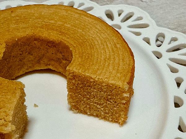 カットした際の断面はみっちりと密度が高く、食べ応えがありそうな印象!実際に食べてみたところ、しっとりした口当たりながらもふんわりとした食感でした。