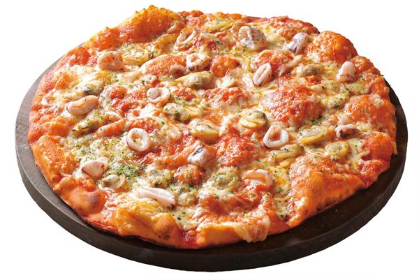 あさりとイカのシーフードピザ。アンチョビソースの塩気が効いたピザです。
