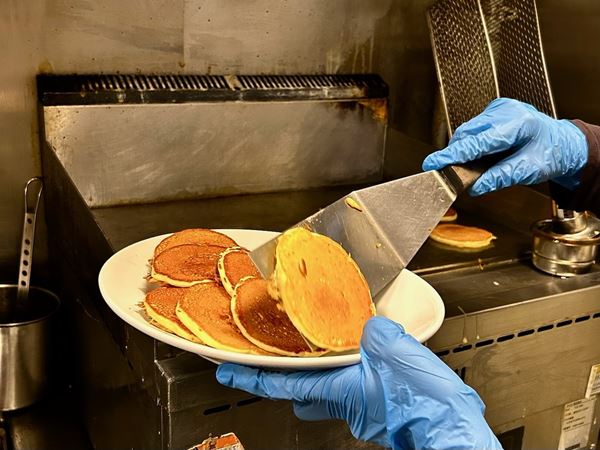 この値段だったら「パンケーキは冷凍製品だろう」と想像していたのですが、いい意味で裏切られました。スタッフが厨房で1枚ずつ焼いていたのです。生地も厨房で作ったものでした。