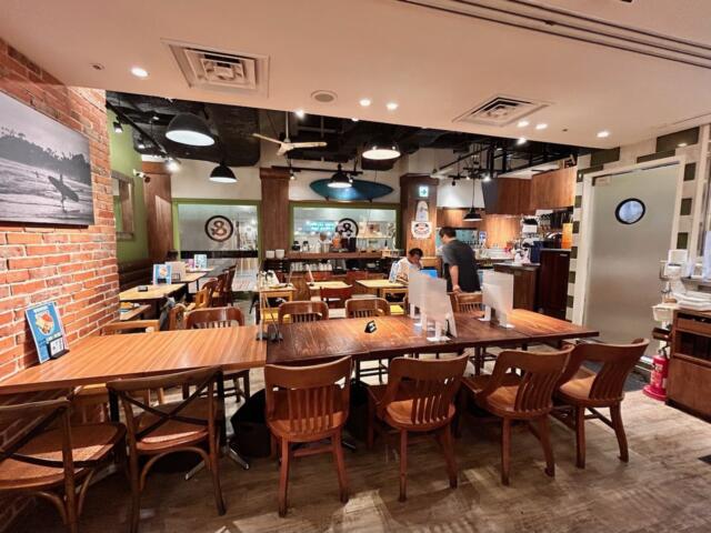 ウッディ調の落ち着いた店内には、サーフボードやサフィンの写真が展示されていました。ラッシュアワーの横浜駅とは別世界が広がっています。