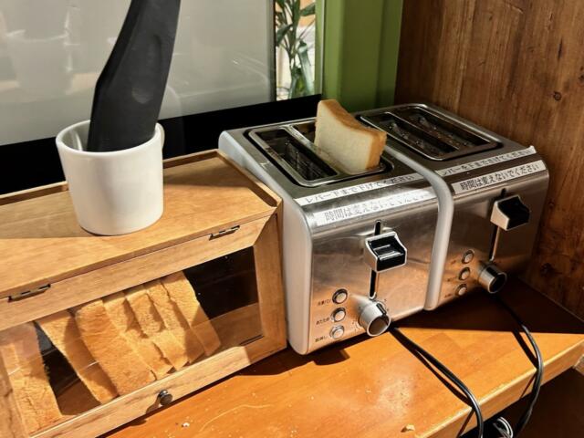 第2ラウンドはパンをチョイス。自分でパンをトースターにセットするスタイル。焼き時間は選べませんが、きれいに焼き上がりました。