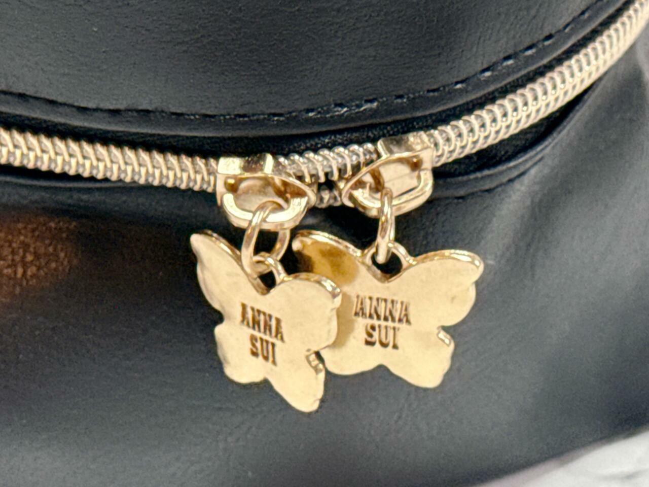 カラーはアナスイらしいブラックで、前面に「ANNA SUI」のブランドロゴがシャンパンゴールドで箔押しされています。