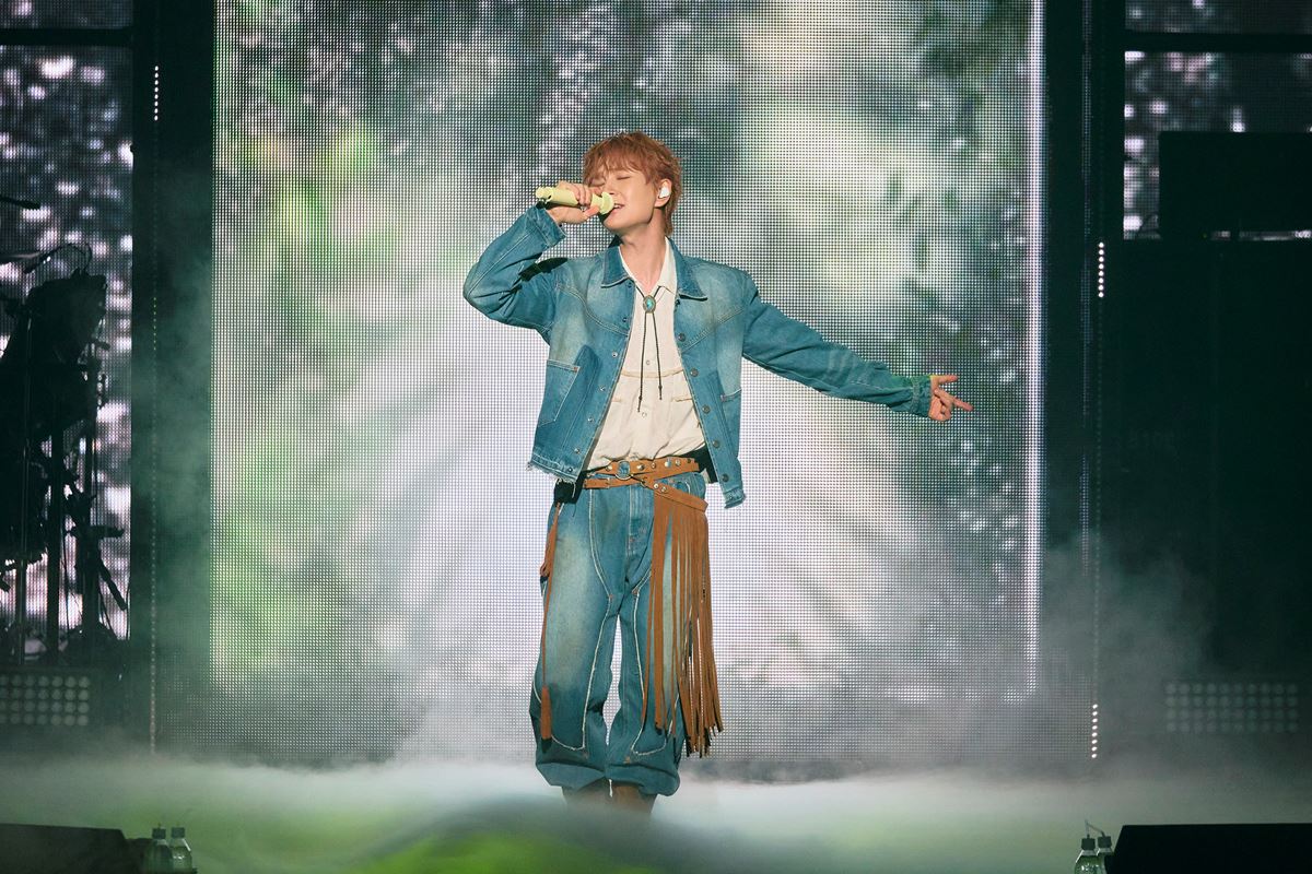「Epilogue」では、過去のライブやMVがテレビの中で流れる演出を優しい歌声と共にONEWが眺めながら歌う姿も印象的だった。続く「花のように」では撮影が許可され、部屋の中で椅子を揺らしながら日本語で歌唱する姿がなんとも愛らしく、会場中に花びらが舞うとあたたかな空間が広がっていった。「Silky」ではベッドに腰掛けたり寝そべったりとリラックスしながら歌唱していき、「メリョク」ではダンサーとの息の合ったダンスと、JJINGGUとのコール&レスポンスで会場全体を巻き込んでいく。