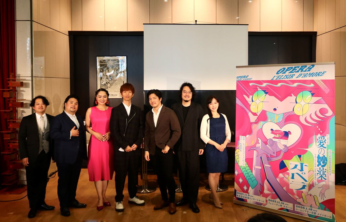 すべて見る2025年11月に東京、大阪、また2026年1月に京都にて、2025年度全国共同制作オペラ『愛の妙薬』が上演される。東京芸術劇場での初演を1カ月後に控えた10月9日に実施された記者発表会では、演出を手がける杉原邦生をはじめ7人の出演者たちが登壇、公演への意気込みを語った。