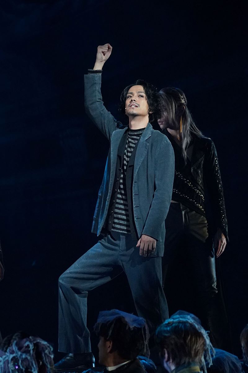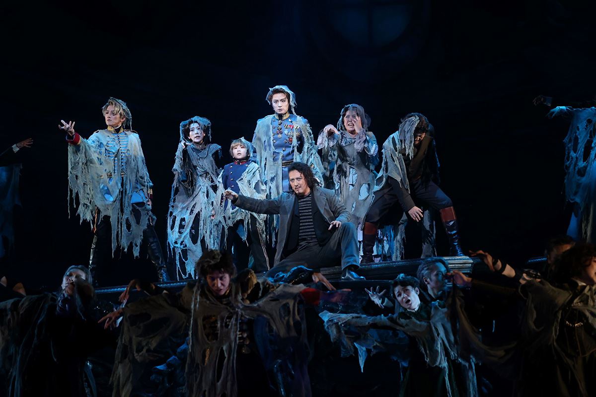 対する井上芳雄は2015年から連続の出演。演技力、歌唱力ともこの世代では圧倒的な実力を持つ井上が、さらにまた一回りも二回りも上達していることに驚かされる。何と言っても歌声が前回より太く、力強い。井上は今年の『二都物語』で芝居と歌唱をシームレスに繋げ“芝居歌”の極みのような素晴らしいパフォーマンスを見せたが、この『エリザベート』では一転、装飾に富んだ華やかな歌声を劇場いっぱいに響かせる。造形としてはワイルドでエキセントリックなトートで、本作の初演でデビューし25年「ミュージカル界のプリンス」と呼ばれ続けた井上が、骨太な芝居でシシィ(エリザベート)のみならず客席をも誘惑した。その姿はもはやキングの風格。井上、古川とも、ファンタジックな存在であり時に日本版ではロマンチックな魅せ方もされてきたトートを、死が本来持つ禍々しさをしっかり感じさせる存在として描き出していたことを特筆したい。