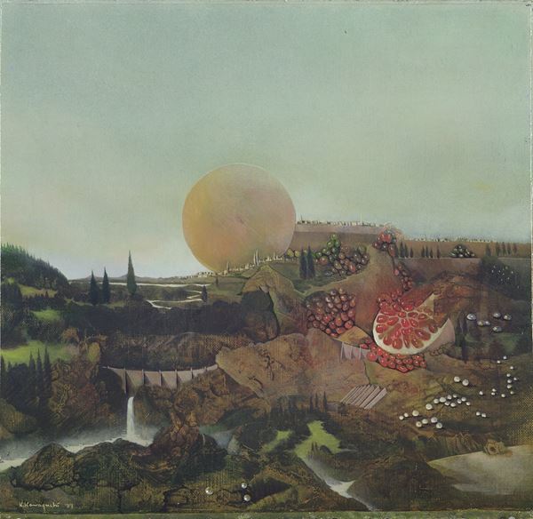 川口起美雄 《柘榴(グラナダ・アプフェル)》 1977年 テンペラ、油彩、カンヴァス 個人蔵