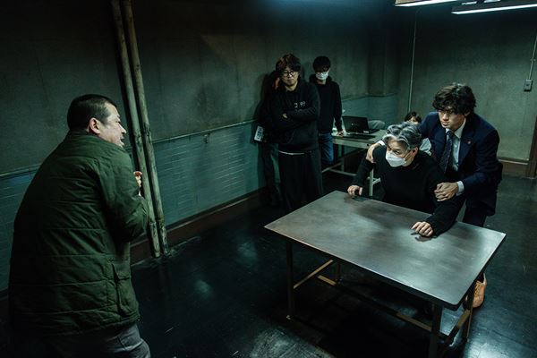 取調室の撮影は、都内ビルの一室に作られたセットで、脚本の冒頭から順を追って撮影を進める「順撮り」によって行われた。伊勢や清宮がタゴサクに振り回されるのを後ろから見ていた類家と同じように、今か今かとタゴサクと対決する瞬間を待ち侘びていた山田。ついに類家とタゴサクが対面するシーンの撮影は、「よーい、スタート!」と言う永井聡監督のかけ声に続いてその興奮や激情がぶつかり合う、とてつもない集中力と爆発力に満ちたひとときとなった。