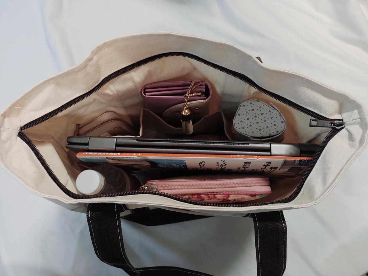 愛用している13.5インチのPCから、A4サイズの雑誌までたっぷり入りました