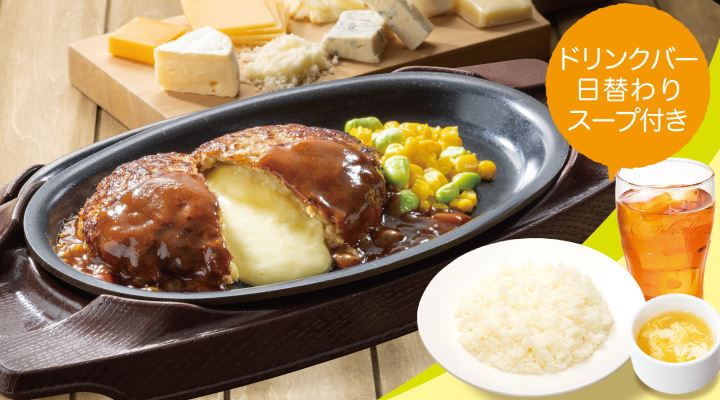 7.「チーズINハンバーグセット(日替わりスープ・ドリンクバー付き)」800~950円(税込)