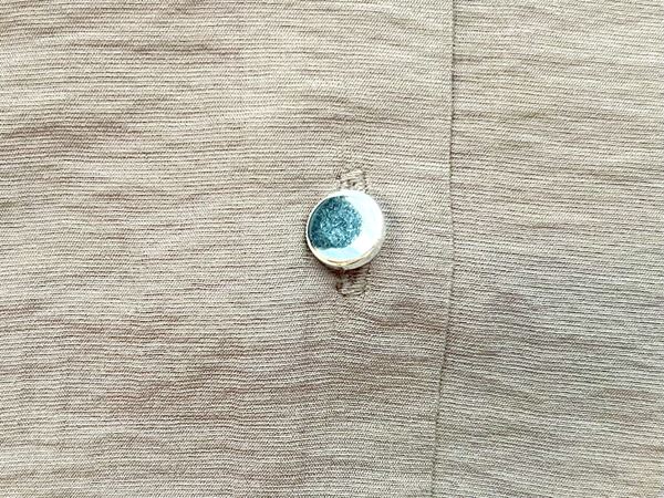 襟元はスーツのジャケットを連想させるテーラードカラー仕様で、首元をスッキリ見せながらきちんと感を演出してくれます。ボタンは光に当てるとキラリと輝くメタルボタンを採用。コーデのさりげないアクセントになりますよ◎