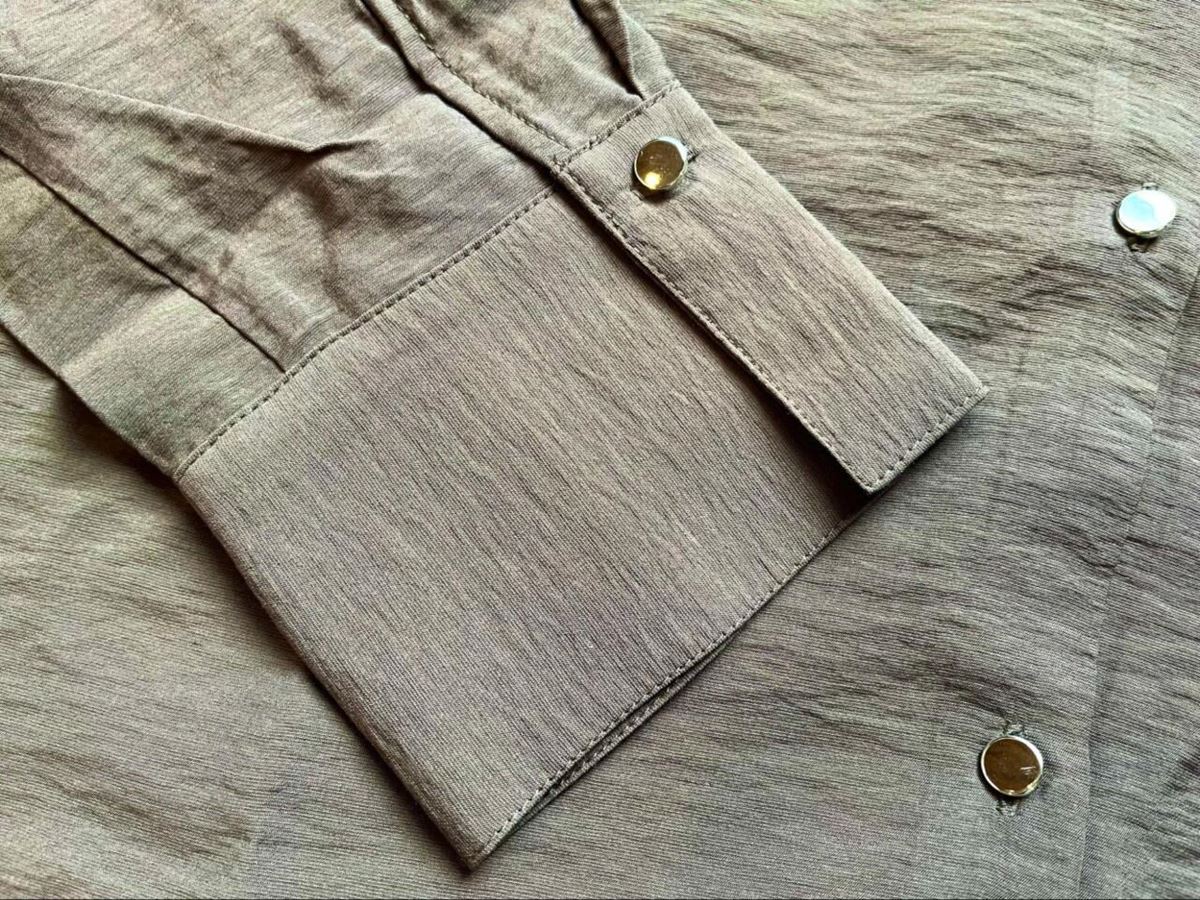 【GLOBAL WORK シャツジャケット】袖口は幅が広め。ボタン部分で折り返して着るとこなれ感がアップします!