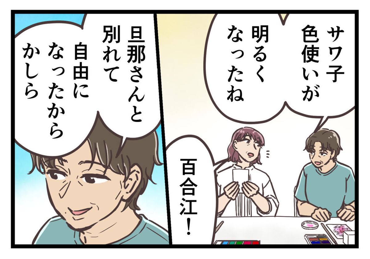 一方その頃、そんな元夫の状況など知る由もないサワ子は、友人と趣味の時間を満喫しているのでした。