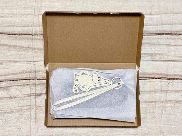 ぱっと見キャラクターデザインには見えませんが、前面の下部に注目!リトルミイの型押しが施されています。リトルミイの型押しは後ろ姿ですが、そのかわいさは十分伝わってきますよね。