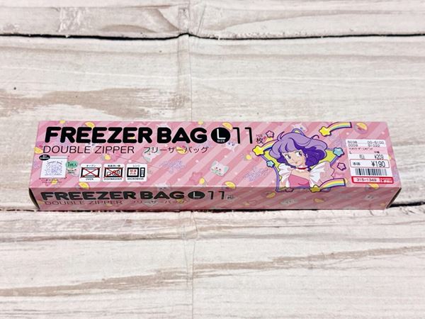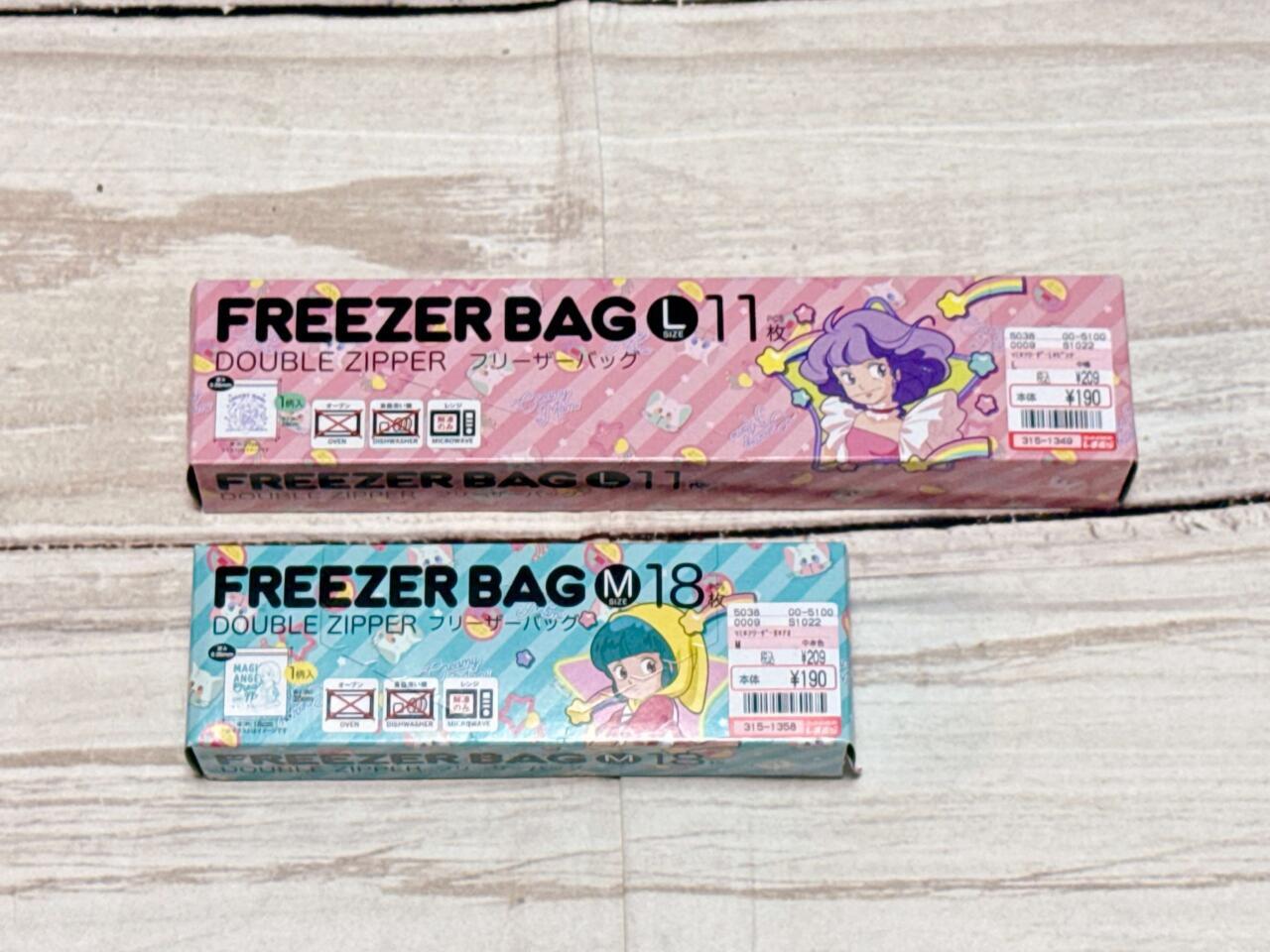 ボックスは、マミとゆうちゃんのイラストがそれぞれプリントされているキュートなデザインです。もちろんフリーザーバッグ本体にもかわいいイラストプリント入り!ピンクがマミ、グリーンが優ちゃんのイラストです。