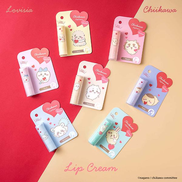 リップクリームは、ハートと一緒になったLovisiaだけのオリジナルデザインのちいかわたちをデザイン。