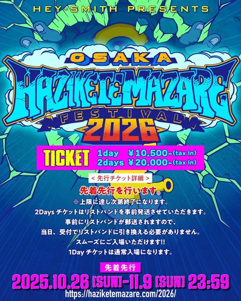 『HEY-SMITH Presents OSAKA HAZIKETEMAZARE FESTIVAL 2026』