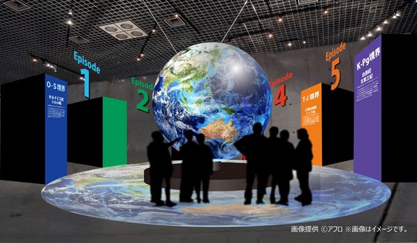 同館の大空間を活かした迫力ある展示演出も楽しみなところだ。ビッグファイブを視覚化した大きな地球儀の映像展示や、史上最大の絶滅の要因でもある火山活動を体感できる模型も登場する。
