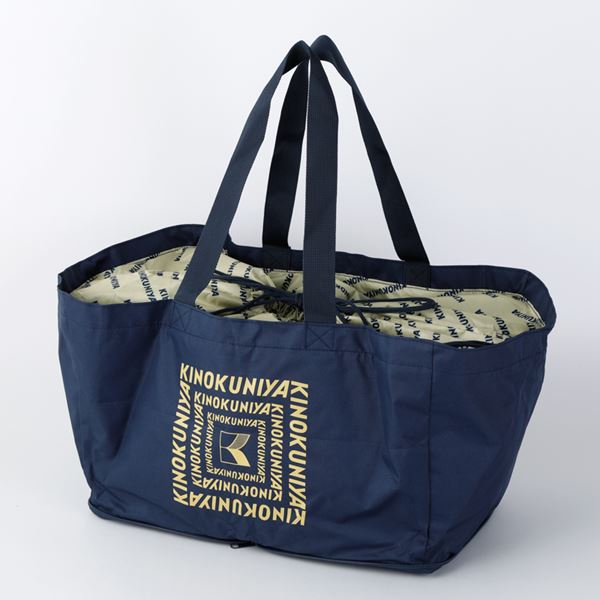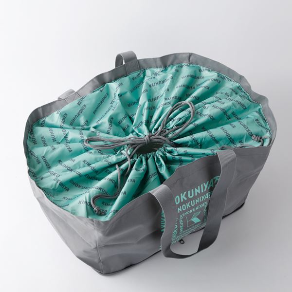 そして、このバッグの最大の魅力は、会計時にレジカゴにセットすることで袋詰めの手間をぐっと短縮できること!上部は巾着仕様でバイカラーになっており、大きく開くので商品の出し入れもスムーズです。