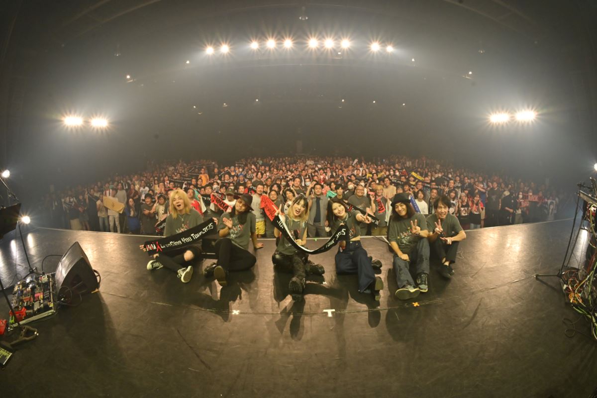 今度はアコースティックギターを持ち、「歌っているときだけは真っ直ぐに、自分に嘘をつかないで、みんなにも嘘をつかないでいたいなと思って書いた曲です」と伝えて、この対バンツアーのために書き下ろした新曲「真っ直ぐ」を届けていく。みんなで声を出して盛り上がれる曲でありつつ、歌詞に込めたメッセージ性がしっかり伝わってくるところが素晴らしかった。続けてエレキギターに持ち替え「ROCK YOU, ROCK ME」を熱唱し、会場のテンションを徐々に上げていく。
