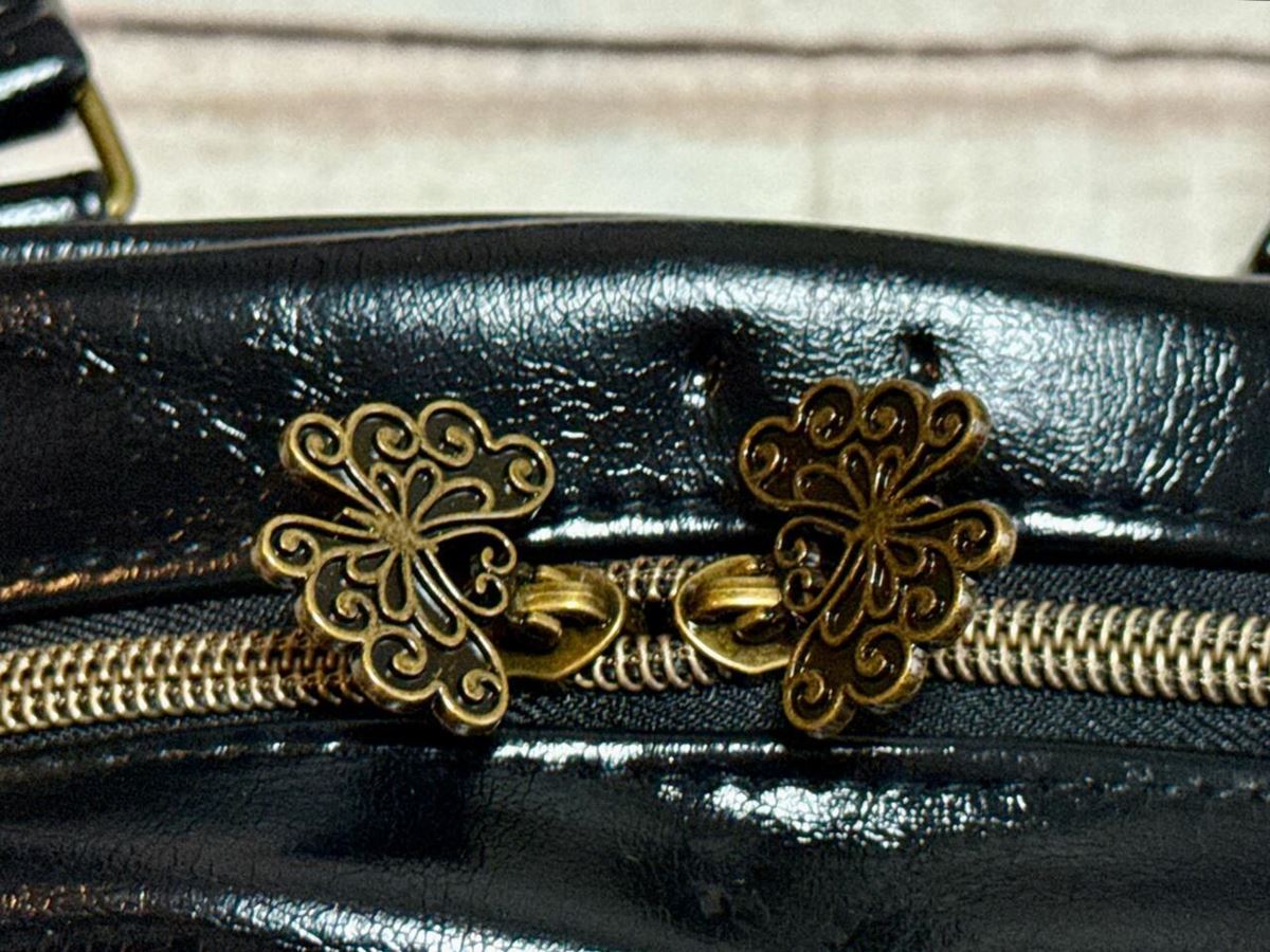 Wファスナーで開閉する仕様。引き手には蝶のモチーフのチャーム付き!