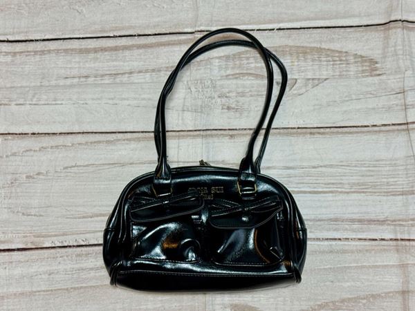 前面上部には「ANNA SUI mini」のブランドロゴ付き。アンティークゴールドのメタルロゴが美しく、ANNA SUI miniらしい印象です。