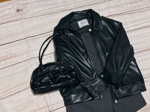 バッグの表地の素材はPVC合皮。上品な光沢感のあるレザー調の生地で、高級感たっぷり。高見えするのがうれしいポイントです。