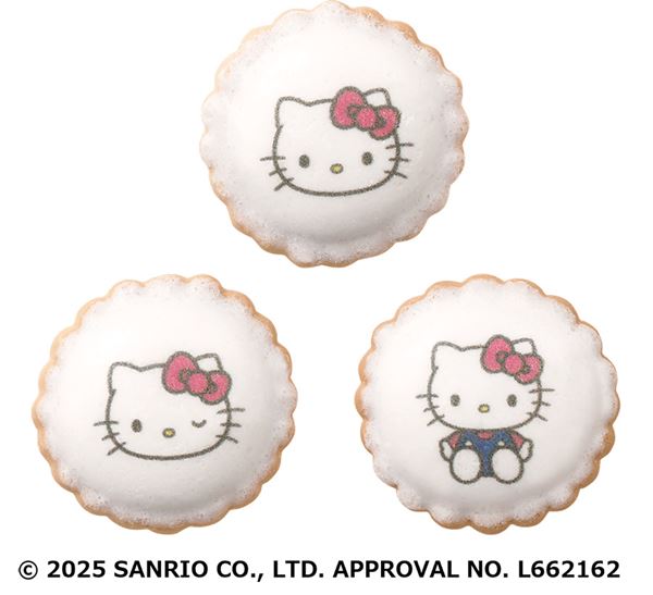 カップには様々な表情のハローキティやモチーフがデザインされ、3種類のアイシングビスケットトッピングも楽しみの一つ。どのビスケットが付いてくるかはお楽しみです♪