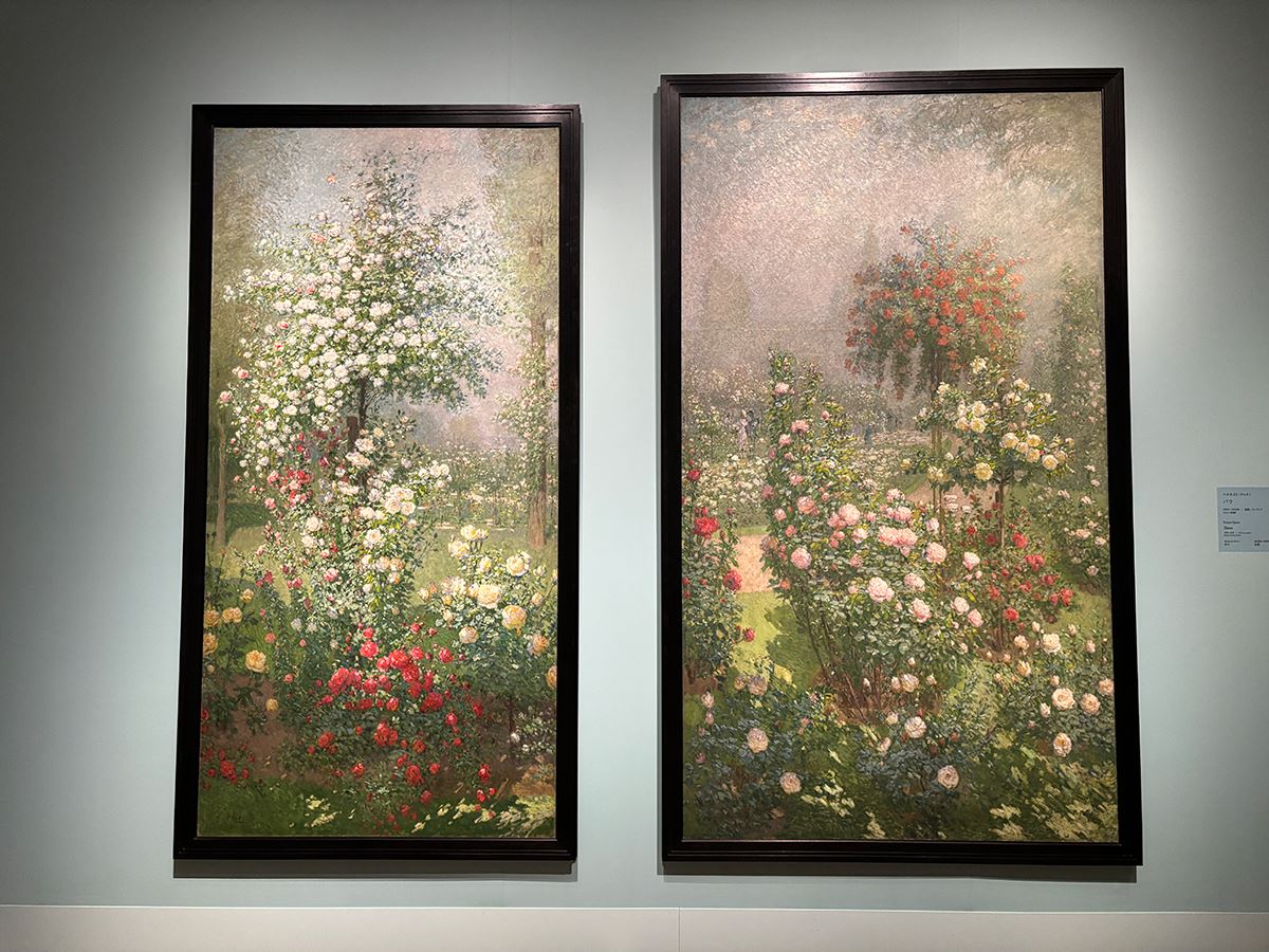 第4章「印象派の装飾」は、絵画などの純粋芸術と装飾を担う応用芸術との垣根が低くなってきた時代にあって、印象派の画家たちも装飾画やタペストリー等の原画、壁紙など、室内装飾に取り組んでいたことに気づかせてくれる。今回は、国内外の重要作も含めて総数約100点が出品されており、たとえば印象派のパトロンだった実業家オシュデから自邸の壁を飾るために注文された装飾画の2点は、モネ作品がオルセー、マネ作品が国立西洋美術館の所蔵で、海を隔てて収蔵されていた両作が時を経て並んで展示されることとなった。