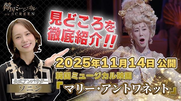 さらに、「韓国ミュージカル ON SCREEN」オフィシャルアンバサダーのソニンがナビゲーターを務めるYouTube番組の第3弾が公開された。『マリー・アントワネット』の見どころを本編映像とともに紹介しており、作品の魅力や注目ポイント、豪華な舞台セットとキャストのパフォーマンスによる表現の奥深さを掘り下げている。