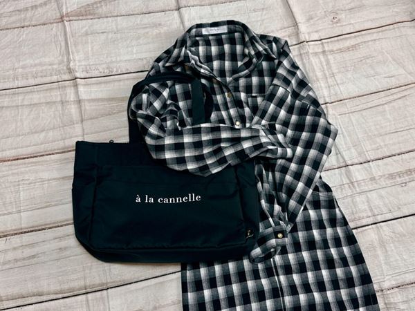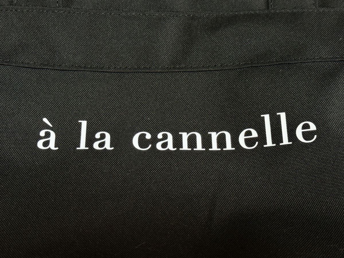 横長フォルムのトートバッグで、前面に「a la cannelle」のホワイトロゴ入りのシンプルでおしゃれなデザインが◎。